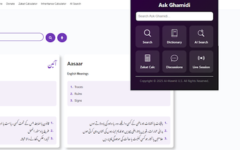 Utöver möjligheten att snabbt komma åt Ask Ghamidi, innehåller tillägget även genvägar till viktiga verktyg såsom Zakat-kalkylator, live-utbildningssessioner, Ask Ghamidi GPT och ett islamiskt lexikon. Oavsett om du forskar om islamisk vägledning, lär dig eller verifierar information, gör denna tillägg att allt är bara ett klick bort, vilket säkerställer en enkel och pålitlig användarupplevelse.